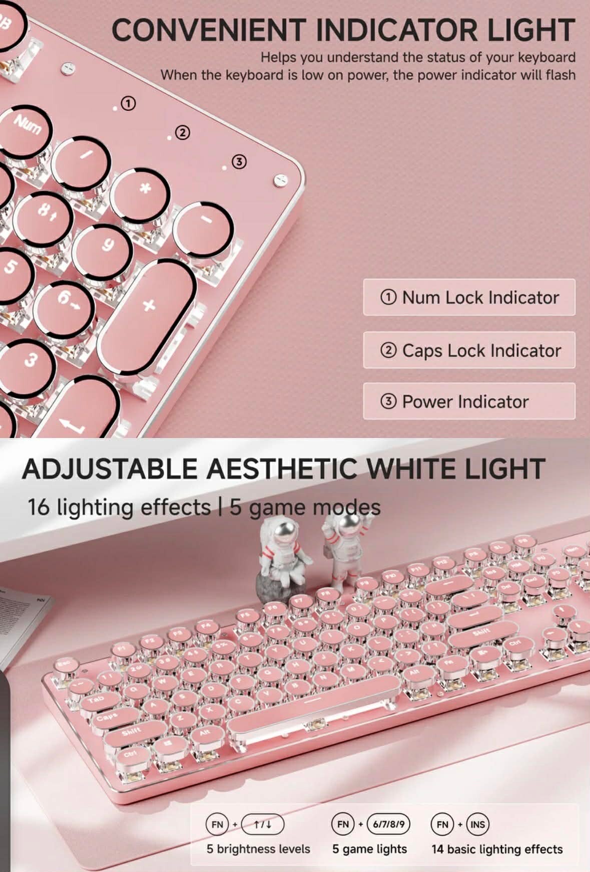 Magegee MK-Storm wireless typewriter keyboard, pink/chrome